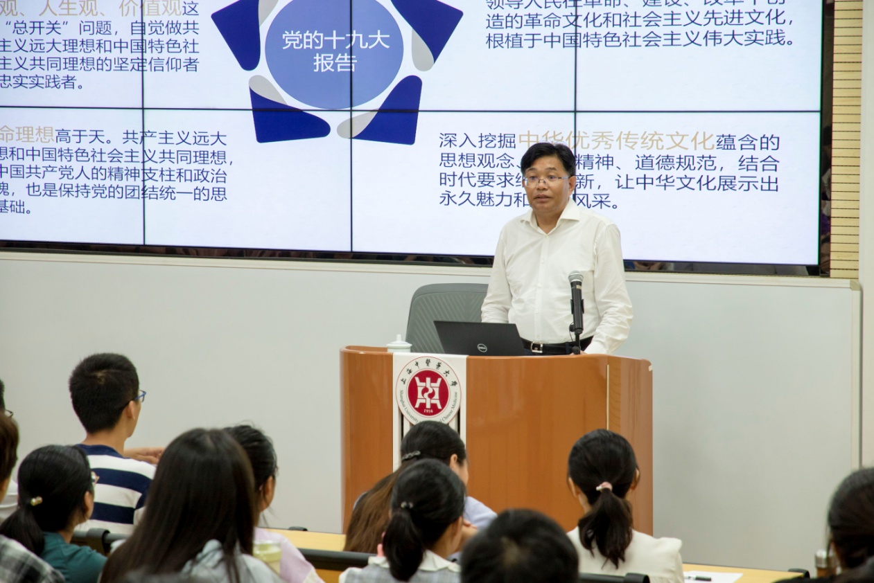 9月20日,在喜迎新中国70华诞的日子里,公司党委书记曹锡康再次走进《岐黄中国》思政大课堂,开展了“学传统文化,强道德修养”的专题教学。围绕时代需求、学文修身、《论语》格言三个部分,他以生动活泼的语言、丰富多彩的内容、缜密深邃的思想,给员工们上了一堂精彩的思政课,鼓励员工珍惜韶华,立鸿鹄志、做奋斗者。曹锡康的讲课也拉开了新学年《岐黄中国》课程的序幕。