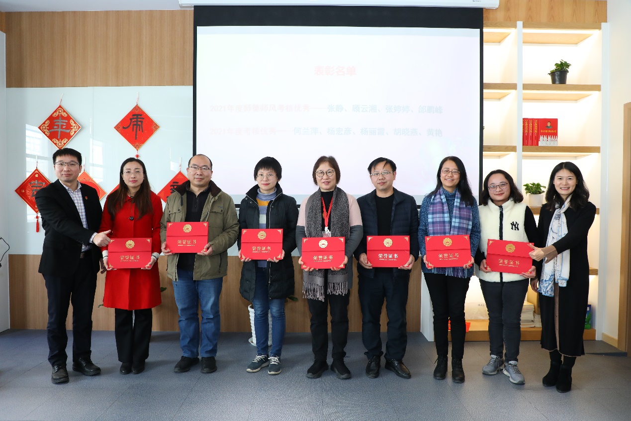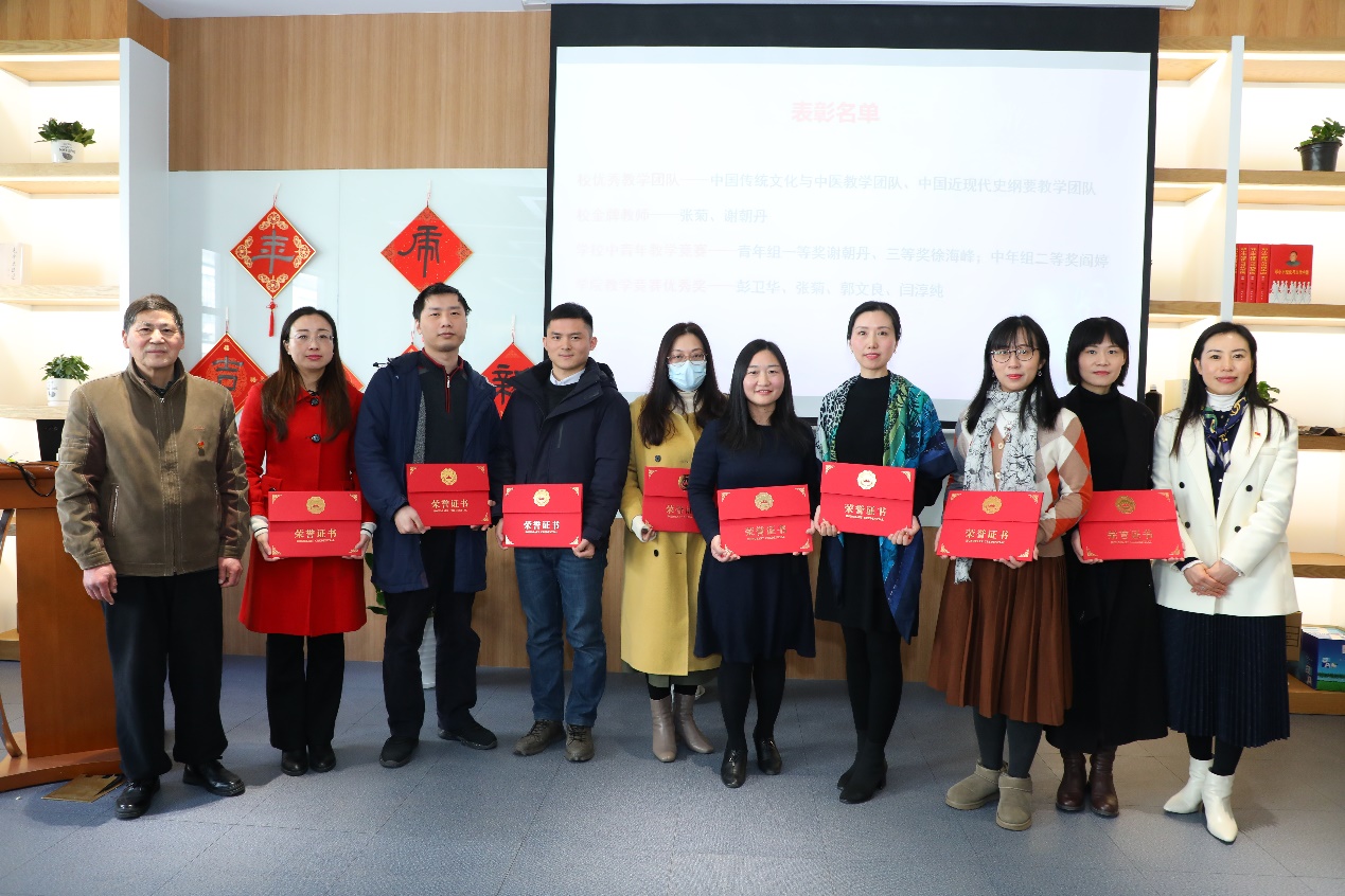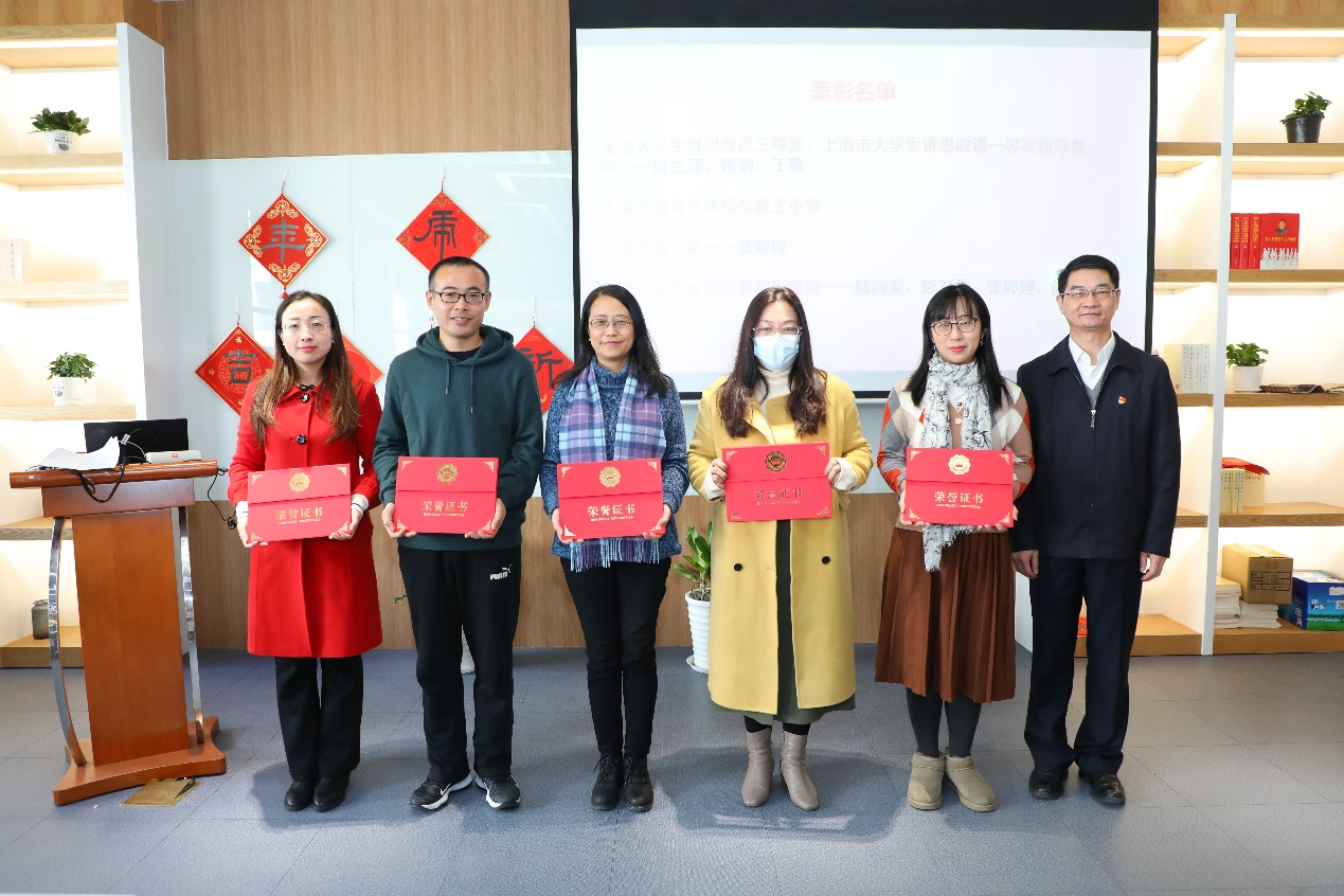 会议对2021年度中在国家级、市级以及校级各类项目中获奖的个人以及团队进行了表彰。与会嘉宾及马院领导进行了颁奖。