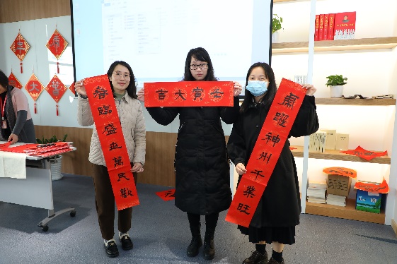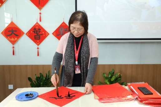 会议在浓浓的年味中召开,会场喜气洋洋。会议开始前举行了“迎虎纳福”庆新春活动,张静老师现场泼墨为大家书写“福”字和春联,浓情笔墨传递新春的祝福